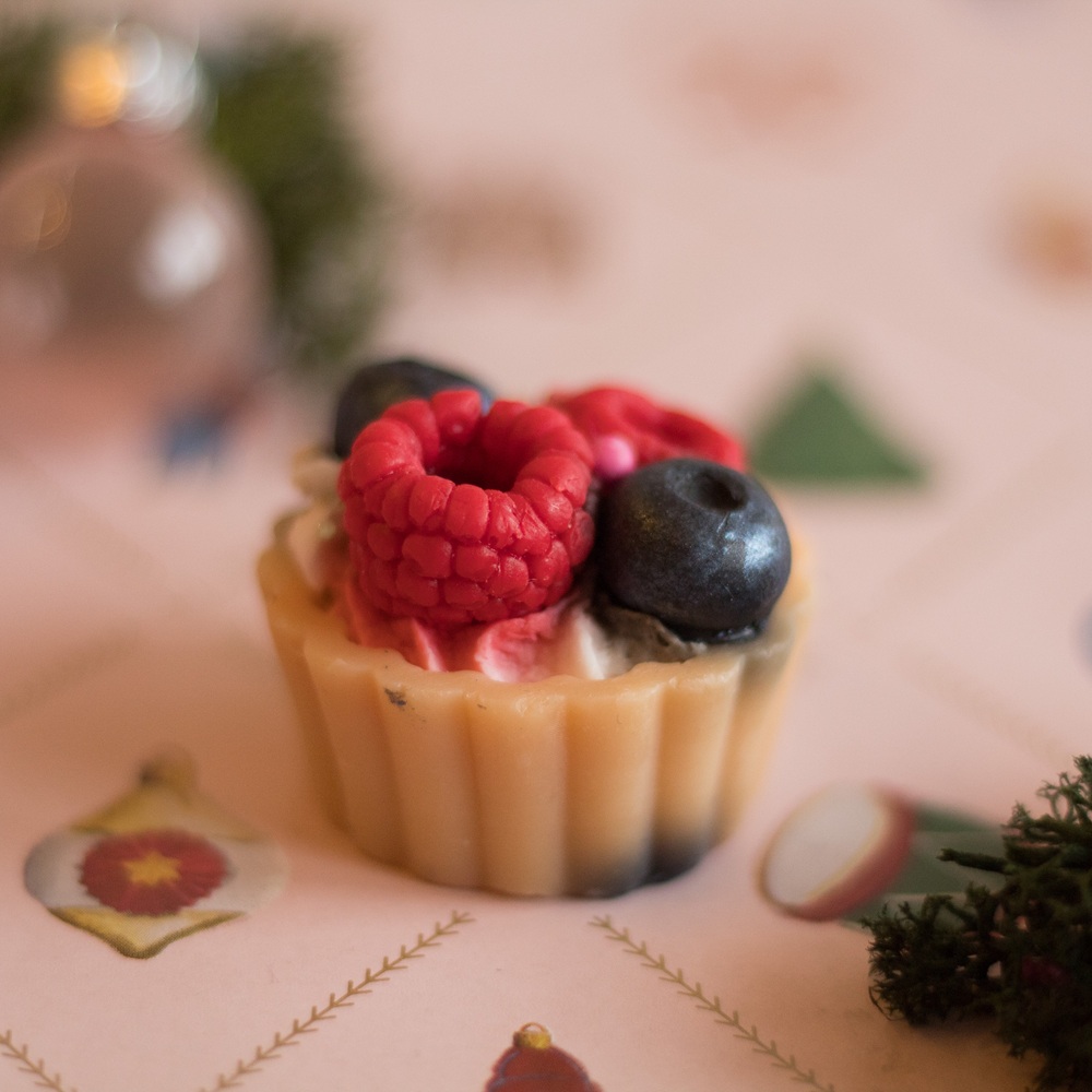 Die Haare, Augenbrauen und den Bart habe ich aus einem schwarzen Webpelz geschnitten und angeklebt. Die Kleidung habe ich mit verschiedenen Borten, Bändern und Bommeln verziert. In jeder der Schachteln befinden sich zwölf kleine Geschenke.