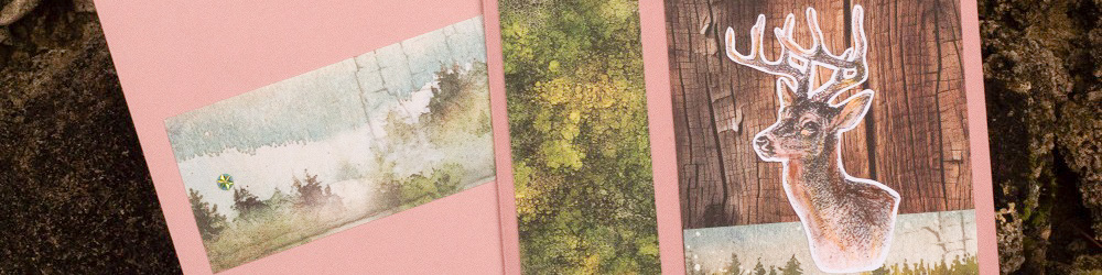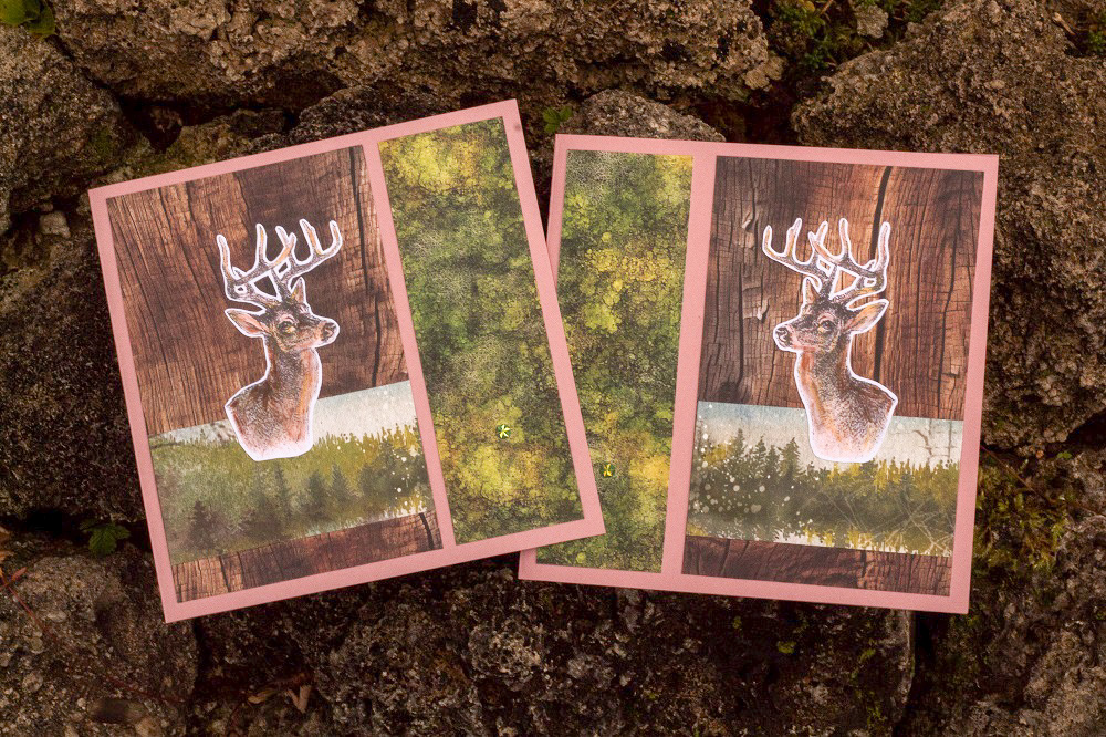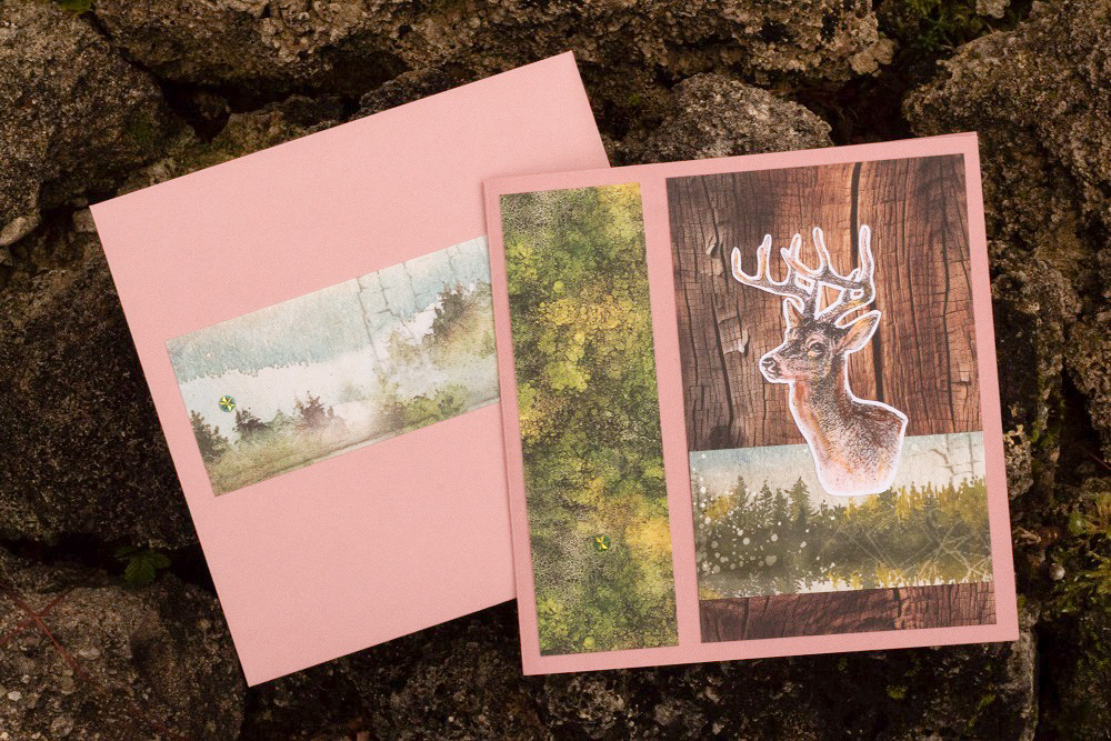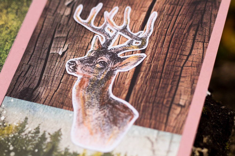 Zu meinem Herbstmenü habe ich meine Gäste mit diesen Hirsch-Karten eingeladen. Ich war im Sommer in Krakau auf einer Tagung und habe natürlich auch die örtlichen Bastelläden inspiziert und dabei einen tollen Block mit schönen Waldmotiven gefunden. Aus diesem Block habe ich ein Holz- und Moospapier als Hintergrund verwendet. Das Papier mit den Bäumen ist aus einem anderen Bastelblock, der für Scrapbooking gedacht ist. Die Hirsche waren ursprünglich schwarz-weiß, ich habe sie aber mit Buntstiften angemalt, damit sie besser zum Design passen.
