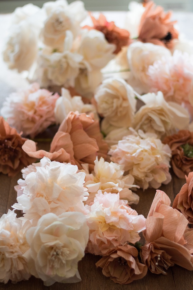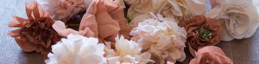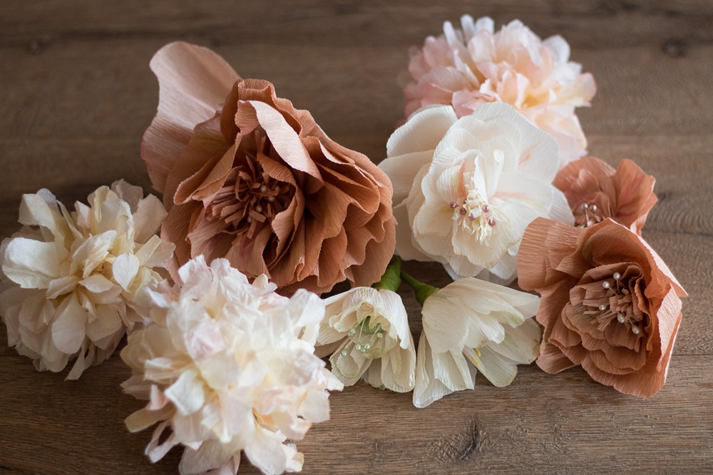 Dieses Jahr habe ich für meine Dekoration zum Osterbrunch viele Papierblumen gebastelt. Die eine Hälfte besteht aus Krepppapier, die andere aus Küchenrolle. Für die Blumen in den den beiden Bildern unten habe ich Blütenstempel aus Papierstreifen und Blütenstempeln um einen Holzspieß geklebt. Dann habe ich Blütenblätter aus Krepppapier geschnitten und einzeln reihum festgeklebt. Den Spieß habe ich mit Floristenband umwickelt. Am Ende habe ich alle Blüten mit Aquarellfarben bemalt, damit sie realistischer aussehen.